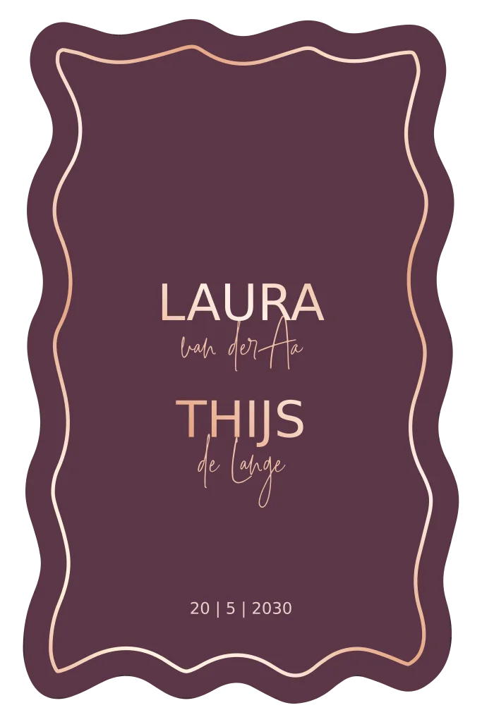 Trouwkaart gegolfde rand plum