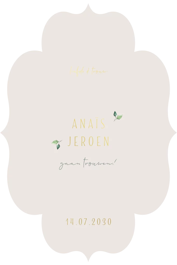 Trouwkaart in originele vorm met foliedruk