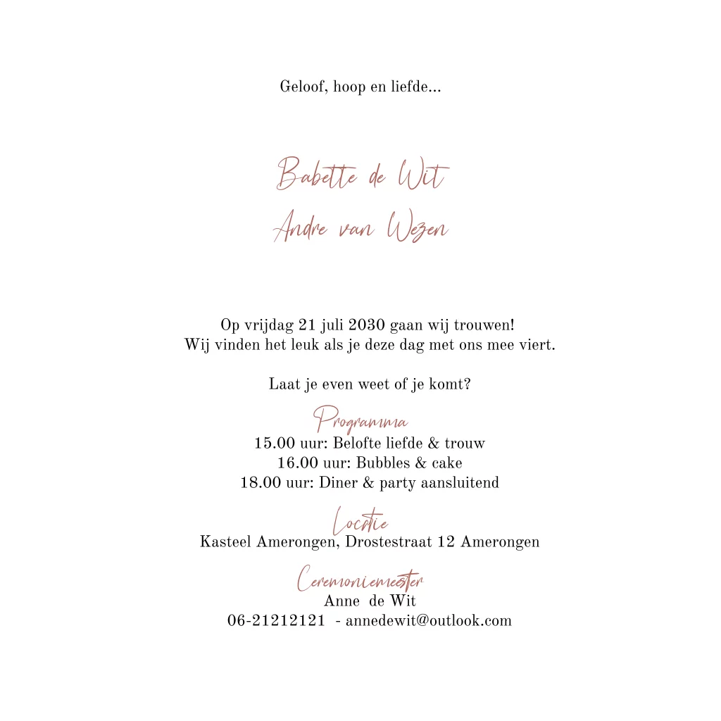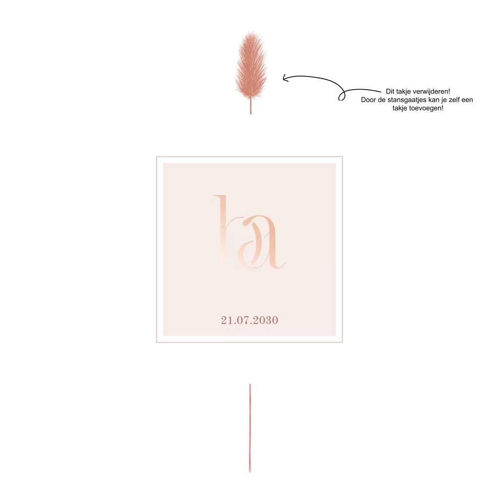 Trouwkaart met boorgaatjes voor echte droogbloem
