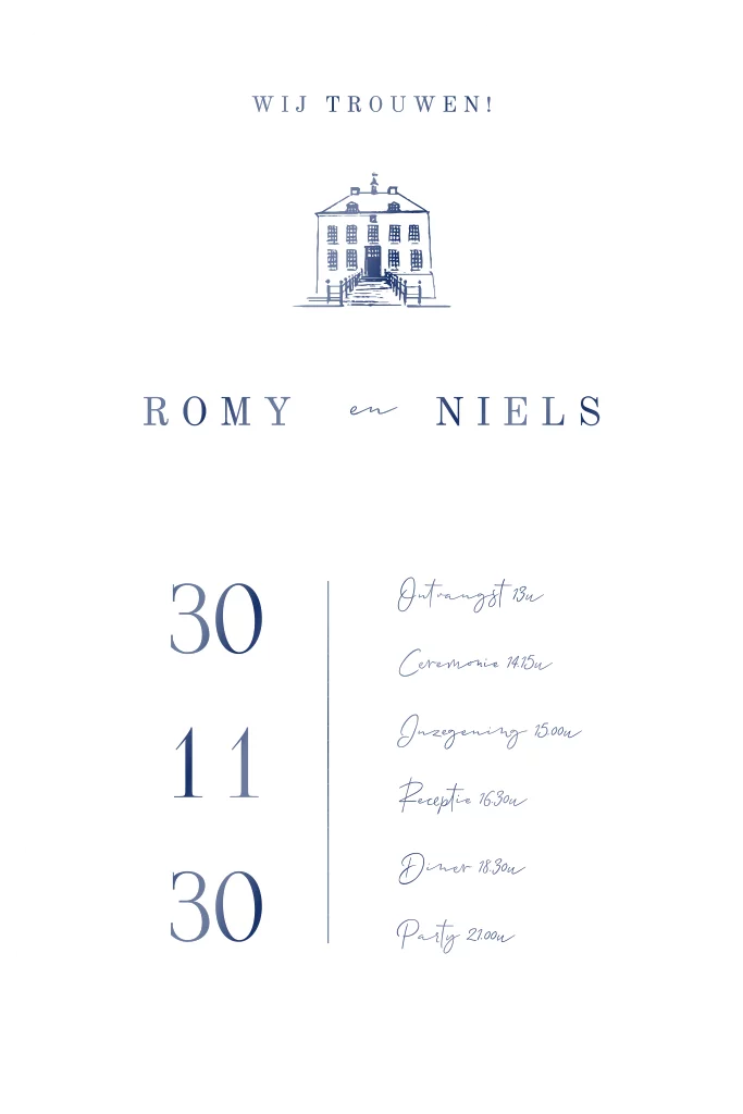 Trouwkaart met organische randen en afbeelding van kasteel. (999999)