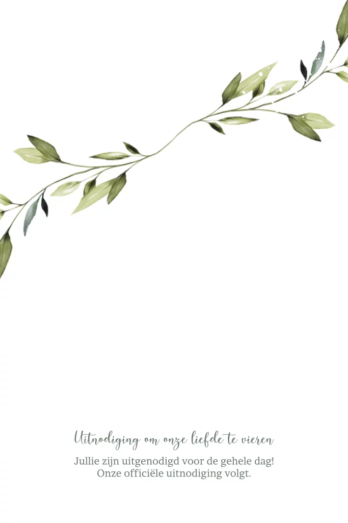 Botanische enkele save the date kaart met eucalyptus blad en écht foliedruk. Alles staat los en is zelf te maken! Andere bladeren zijn te vinden in de beeldbank.