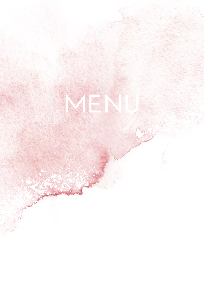 Romantisch chique dinerkaart voor op tafel bij jullie bruiloft? Op de achtergrond roze aquarel. Versierd met goudfolie spetters en tekst.