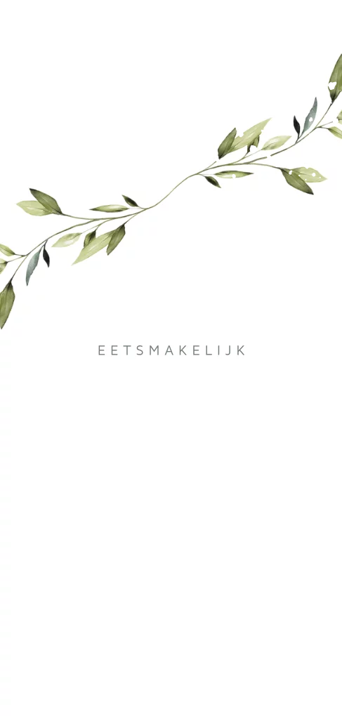 Stijlvolle eucalyptus blad menukaart voor de gasten op witte ondergrond. Alle zijdes worden met echt folie gedrukt.