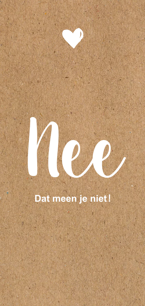 Moderne enkele kraft look grafische trouwkaart woord grapje NEE, dat meen je niet! JA wij gaan trouwen! Met echt goudfolie druk! Formaat 10x21cm