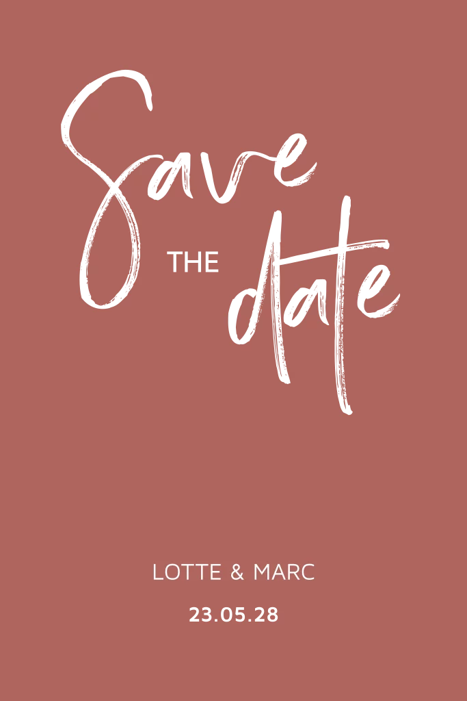 Strakke save the date kaart met écht goud foliedruk. Ook mogelijk in zilver- en koperfolie. Zelf maken!