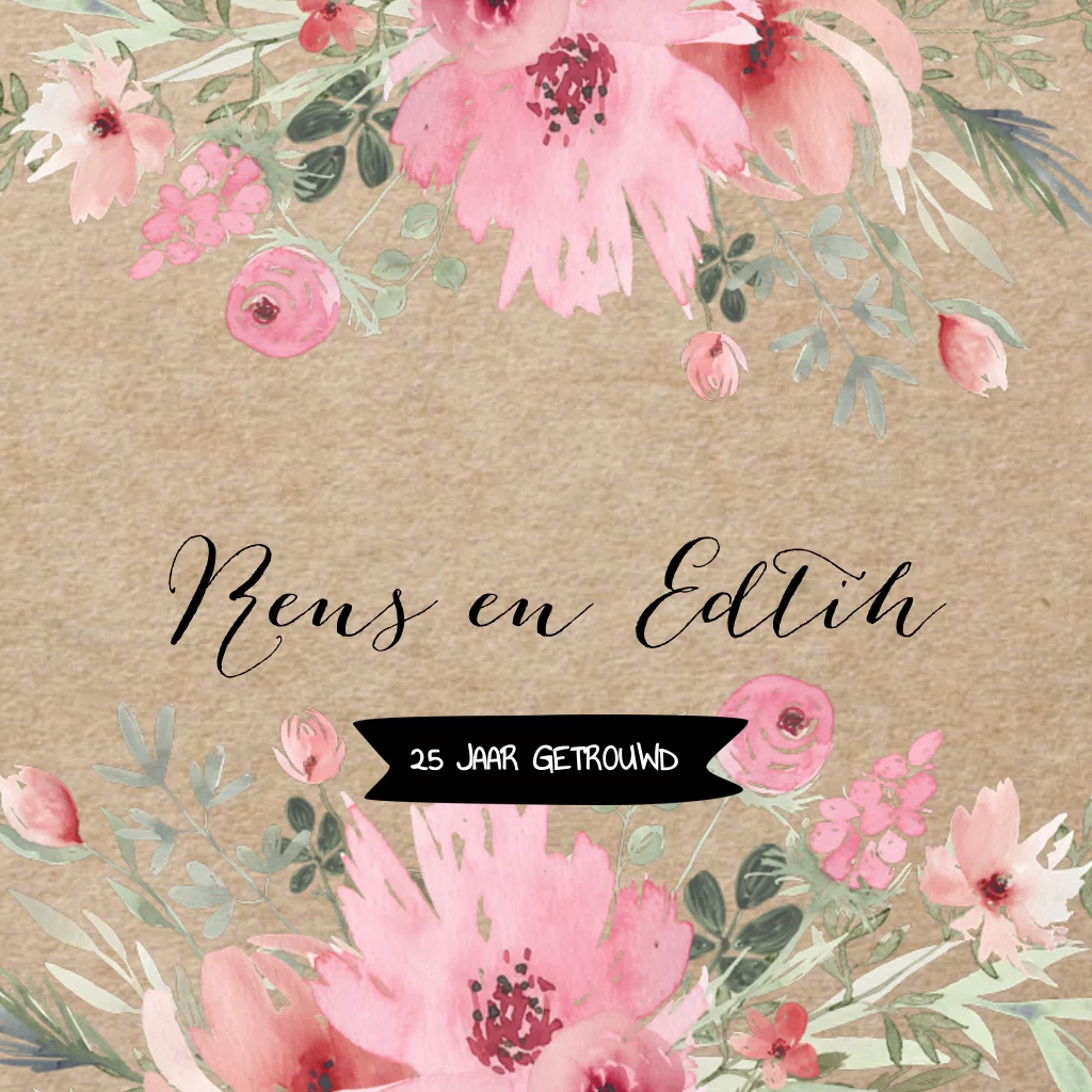 Opzoek naar een stijlvolle huwelijksjubileum met kraft ondergrond voor jullie 25 jarig huwelijksfeest? Enkele huwelijksaankondiging met mooie romantische watercolor bloemen zelf maken!