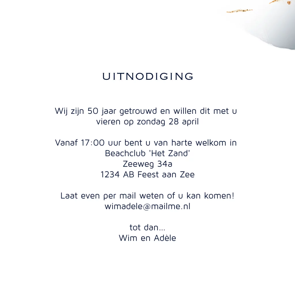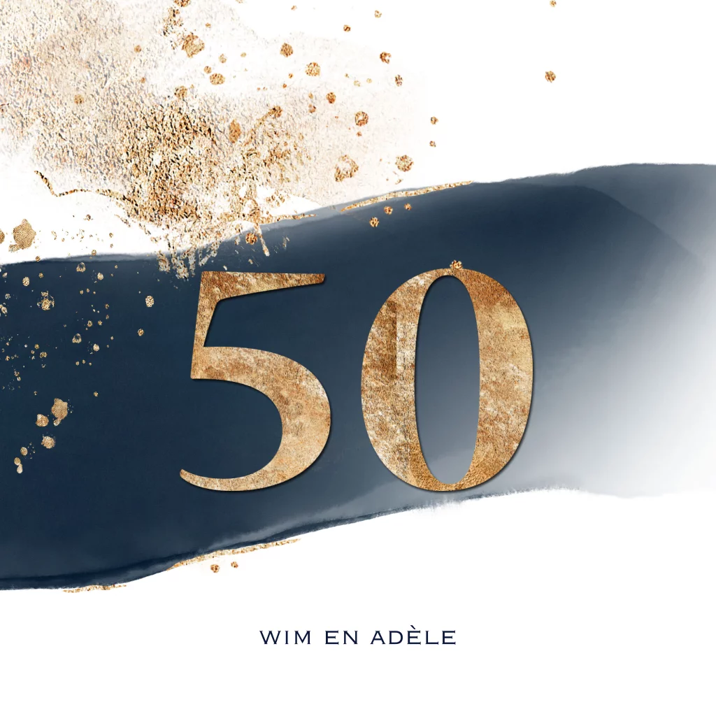 Eerdaags jullie 50 jarig huwelijks jubileum feest geven? Mooie uitnodiging met abstracte vormen en goudfolie poeder look.