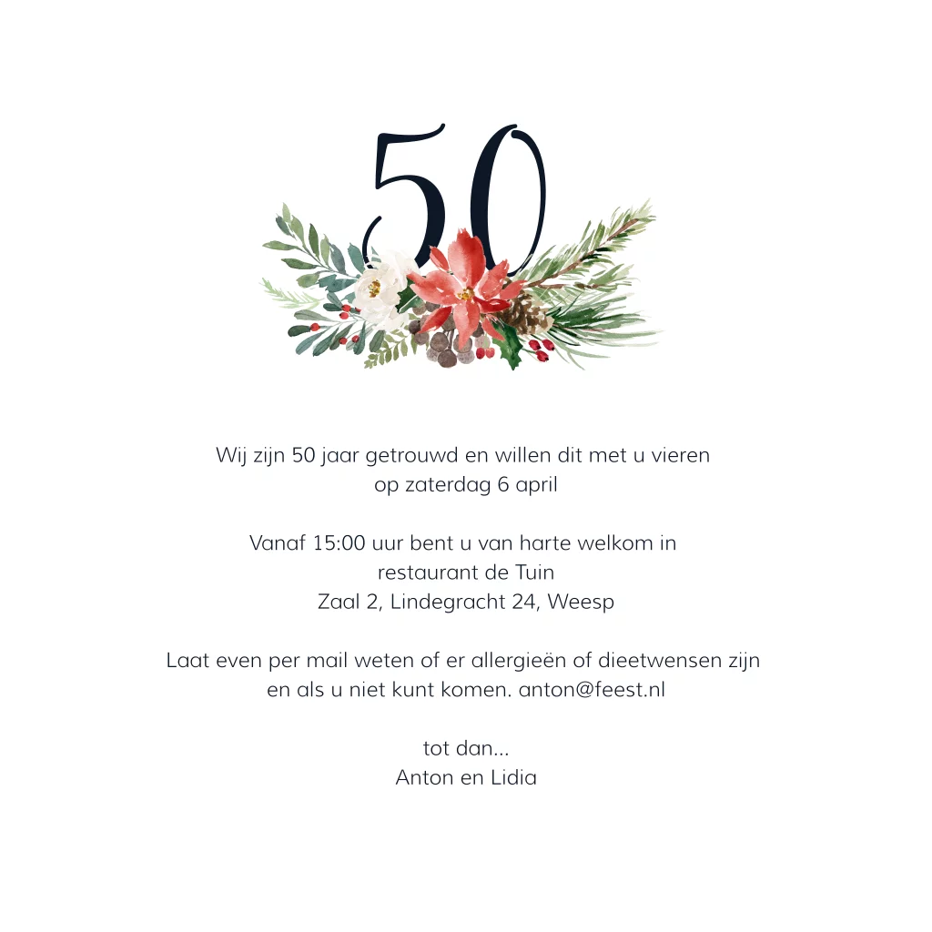Uitnodiging 50 jubileum met bloemen patroon